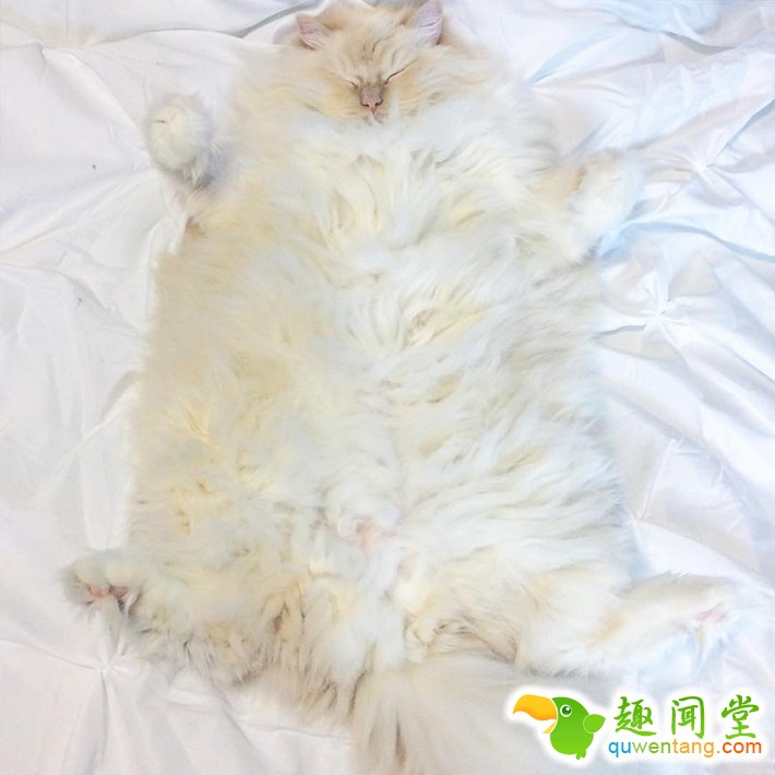 这只猫平时喜欢躺在铲屎官的床上,要么伪装成一个巨大的蓬松的枕头,要么把自己埋在自己厚厚的毛毛里面。毛球控们快来收图~